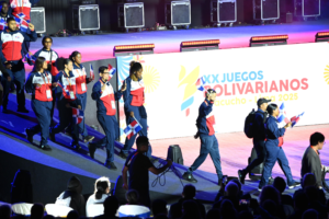 LIMA, Perú. La delegación dominicana desfiló con porte atlético en la ceremonia de apertura de los XX Juegos Bolivarianos Ayacucho-Lima 2025, celebrada la noche del sábado en la Fortaleza del Real Felipe en el Callao.