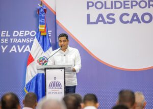 Durante el acto, el ministro Cruz destacó la importancia del multiusos para la juventud de Santo Domingo Oeste y reafirmó el compromiso de MIDEREC con el desarrollo del deporte comunitario.