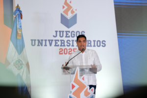 Al dirigirse a los competidores, el ministro agregó que “esta es una oportunidad muy valiosa para que cada universidad enarbole su bandera, su himno, su marca, y a sus estudiantes en esta competencia sana, libre, deportiva y democrática, donde puede demostrar lo que es el poder transformador del deporte”.
